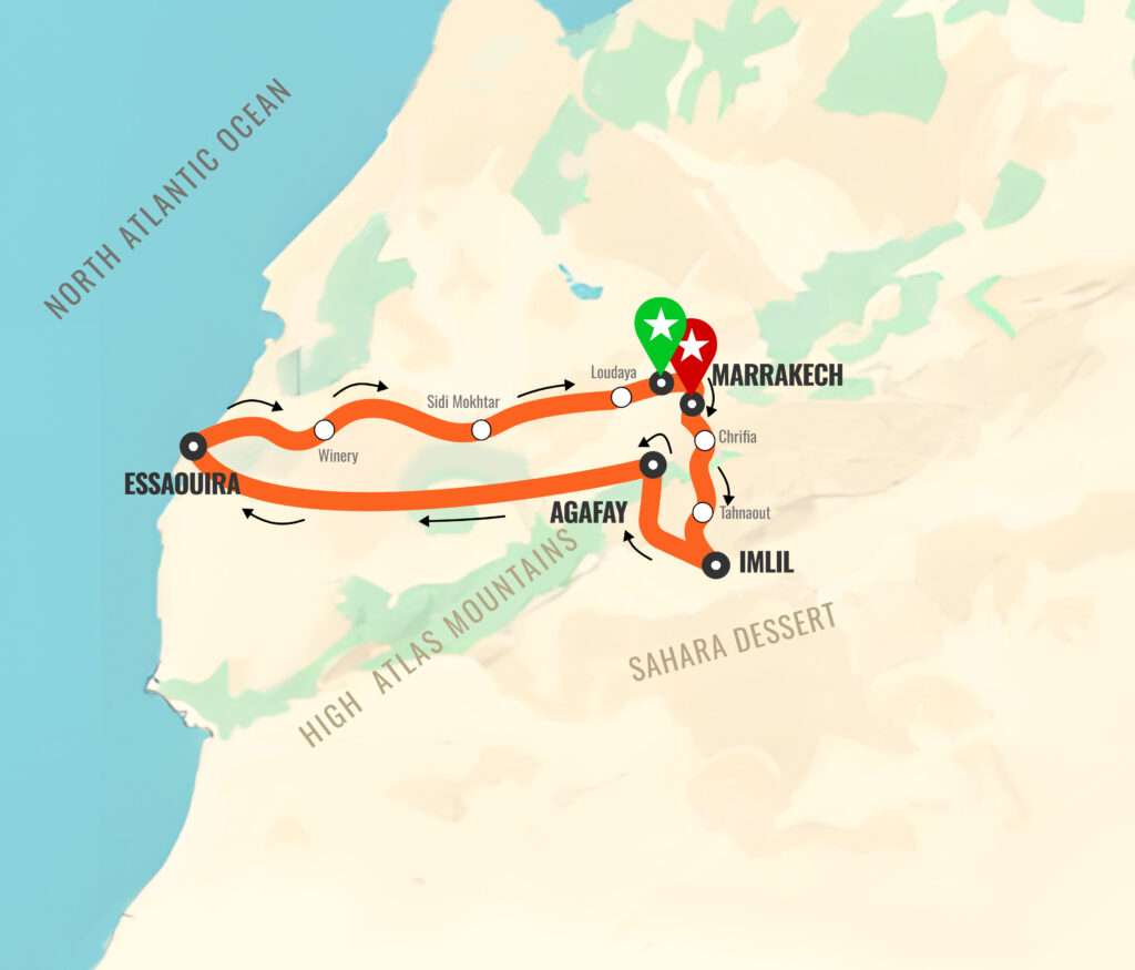 Spend your last morning in Essaouira with a variety of optional activities to choose from. Whether it’s horseback riding along the beach, an exciting ATV adventure, surfing, swimming, or some final souvenir shopping, the morning is yours to enjoy.